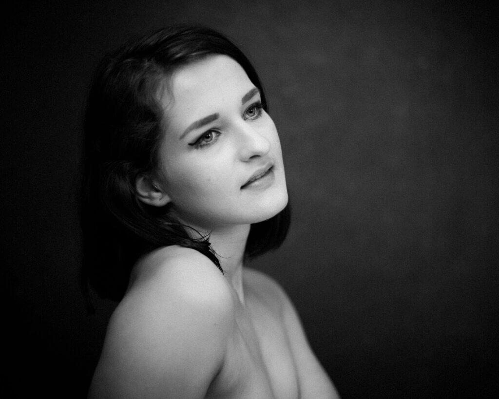 Freitagabend schaute Krizana bei mir im Studio vorbei. Irgendwie war für sie an diesem Tag schon einiges schief gelaufen. Ein ebenfalls für diesen Tag geplantes Shooting mit einem anderen Fotografen war kurzfristig ausgefallen. Bei ihrer Anfahrt von Mannheim nach Sandhausen geriet sie in eine Vollsperrung der Autobahn und war entsprechend spät dran. Auch ihr Koffer ging zu Bruch, so dass sie sich in Mannheim einen neuen besorgen musste. Und bei mir im Fotostudio brach auch noch eine Gardinenstange aus der Wand, was die Führung des Tageslichts nicht wirklich vereinfacht hat.